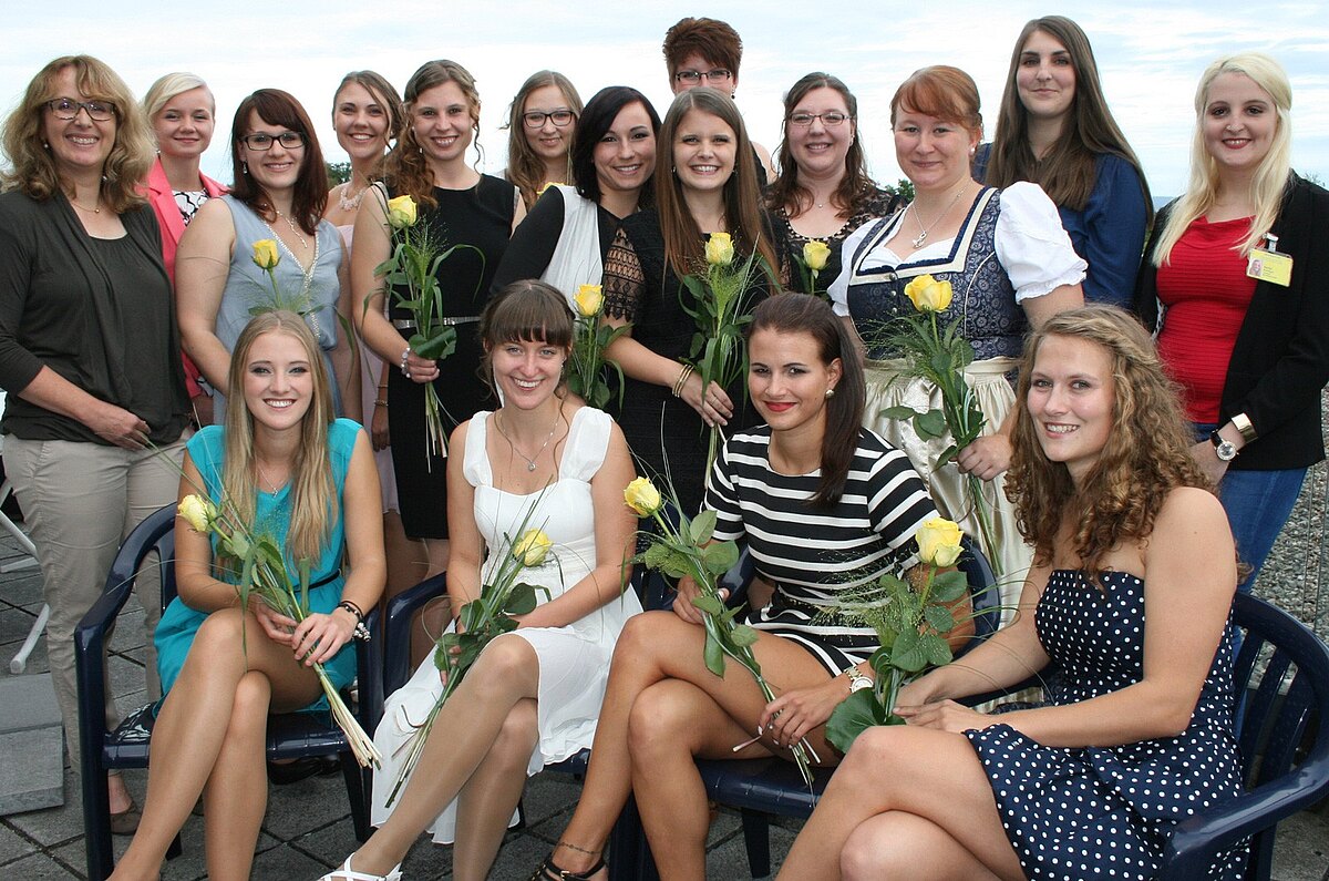 Es ist geschafft: Als examinierte Gesundheits- und Kinderkrankenpflegerinnen verlassen die 14 Schülerinnen des Kurses 2012/15 die Berufsfachschule für Kinderkrankenpflege und stellen sich den Herausforderungen, die das Berufsleben bietet. Alle Absolventinnen haben bereits eine Festanstellung gefunden und bleiben tatsächlich im Bereich der Kinderkrankenpflege – nicht selbstverständlich: Da die Ausbildung auch Praxiseinsätze in der Erwachsenenkrankenpflege enthält, hätten sich den Absolventinnen auch hier mögliche Arbeitsfelder geboten.