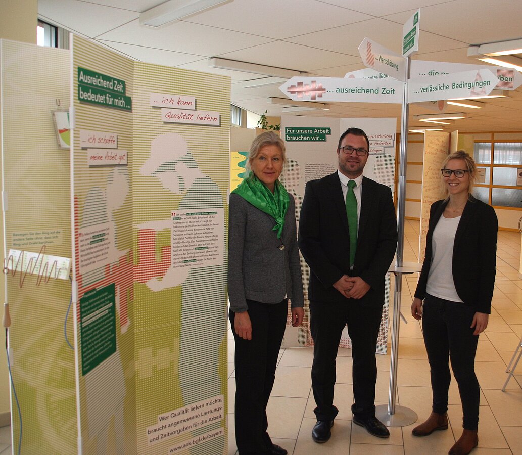 Zusammengestellt wurde die Ausstellung von der Krankenkasse AOK, die das betriebliche Gesundheitsmanagement der Klinikum Bayreuth GmbH als Partner unterstützt. Sechs Ausstellungstafeln laden Mitarbeiterinnen und Mitarbeiter, aber auch Besucher und Patienten ein, sich selbst zu fragen: Was brauche ich, um entspannt und stressfrei arbeiten zu können? Wie wichtig sind Wertschätzung, das richtige Team, passende Aufgaben oder verlässliche Bedingungen? Ilona Birner, bei der AOK Koordinatorin für das Betriebliche Gesundheitsmanagement, AOK-Firmenkundenberater Daniel Fleißner und Meike Schmelz, bei der Klinikum Bayreuth GmbH für das Betriebliche Gesundheitsmanagement zuständig, eröffneten die Ausstelluung jetzt.