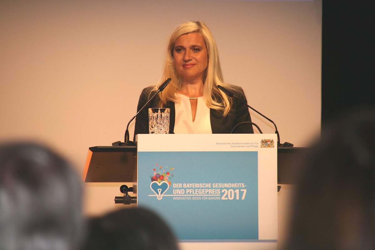 „Wir wollen eine Mischung aus modern und menschlich“, sagte Melanie Huml, Staatsministerin für Gesundheit und Pflege, am Mittwochabend bei der Preisverleihung in der BMW-Welt in München. Die modernen medizinischen Möglichkeiten dürften nicht die zwischenmenschliche Zuwendung ersetzen. „Wir brauchen eine zugewandte Pflege.“ Die werde maßgeblich von neuen innovativen Konzepten unterstützt. Melanie Huml rief die Teilnehmer der Preisverleihung, darunter auch Vertreter der Klinikum Bayreuth GmbH, dazu auf, auch weiterhin neue Wege zu beschreiten.