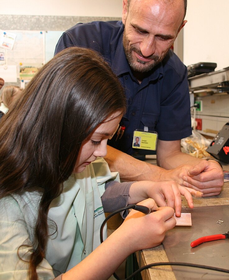 Die zwölf Schülerinnen löteten, prüften Geräte in den technischen Werkstätten des Klinikums und erkundeten gemeinsam mit den Mitarbeitern der Technischen Abteilung die Lüftungstechnik im Krankenhaus.