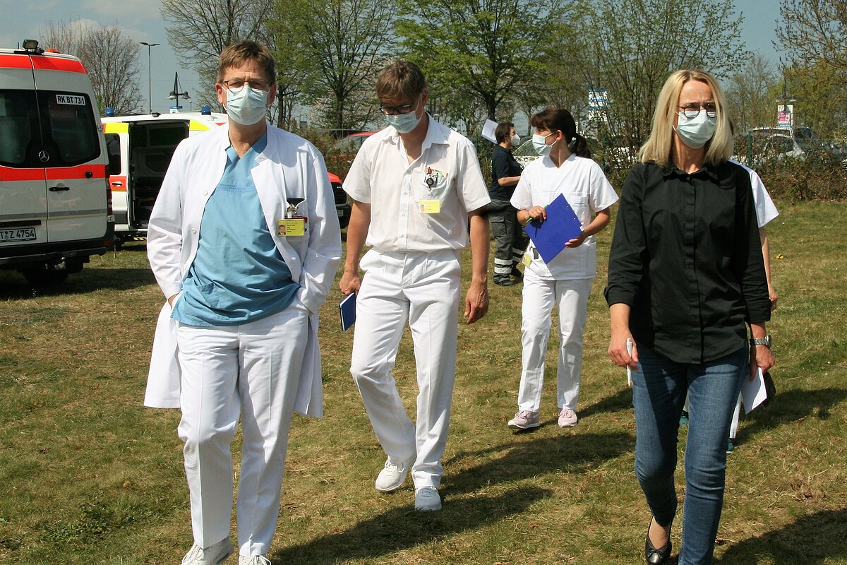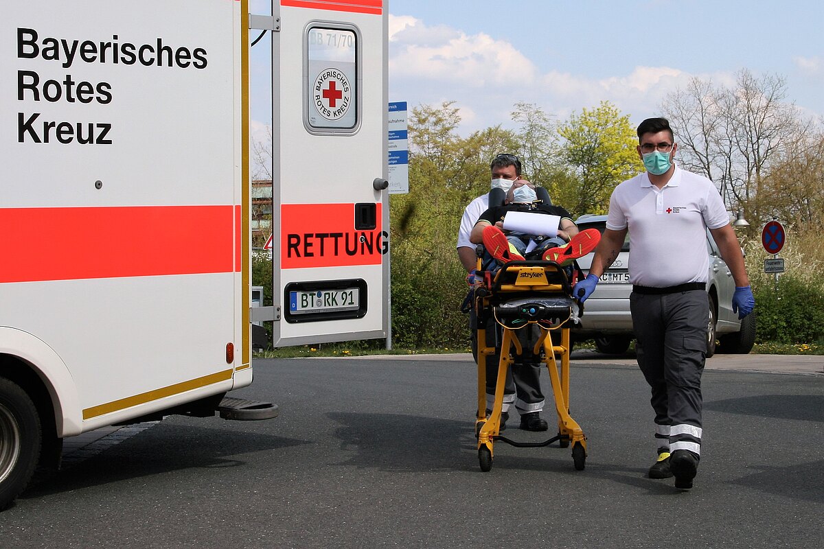 Was, wenn in Corona-Zeiten viele Patienten in kurzer Zeit am Klinikum Bayreuth ankommen? Dieses Szenario haben ehrenamtliche Retter des Kreisverbandes Bayreuth des Roten Kreuzes und das Team der Klinikum Bayreuth GmbH jetzt geübt. Mehr als 50 Helferinnen und Helfer der BRK-Bereitschaften aus Creußen, Pegnitz, Hollfeld, Mistelgau und Bayreuth sowie von der Schnelleinsatzgruppe Rettungsdienst Bayreuth und von der Klinikum Bayreuth GmbH probten den Ernstfall.