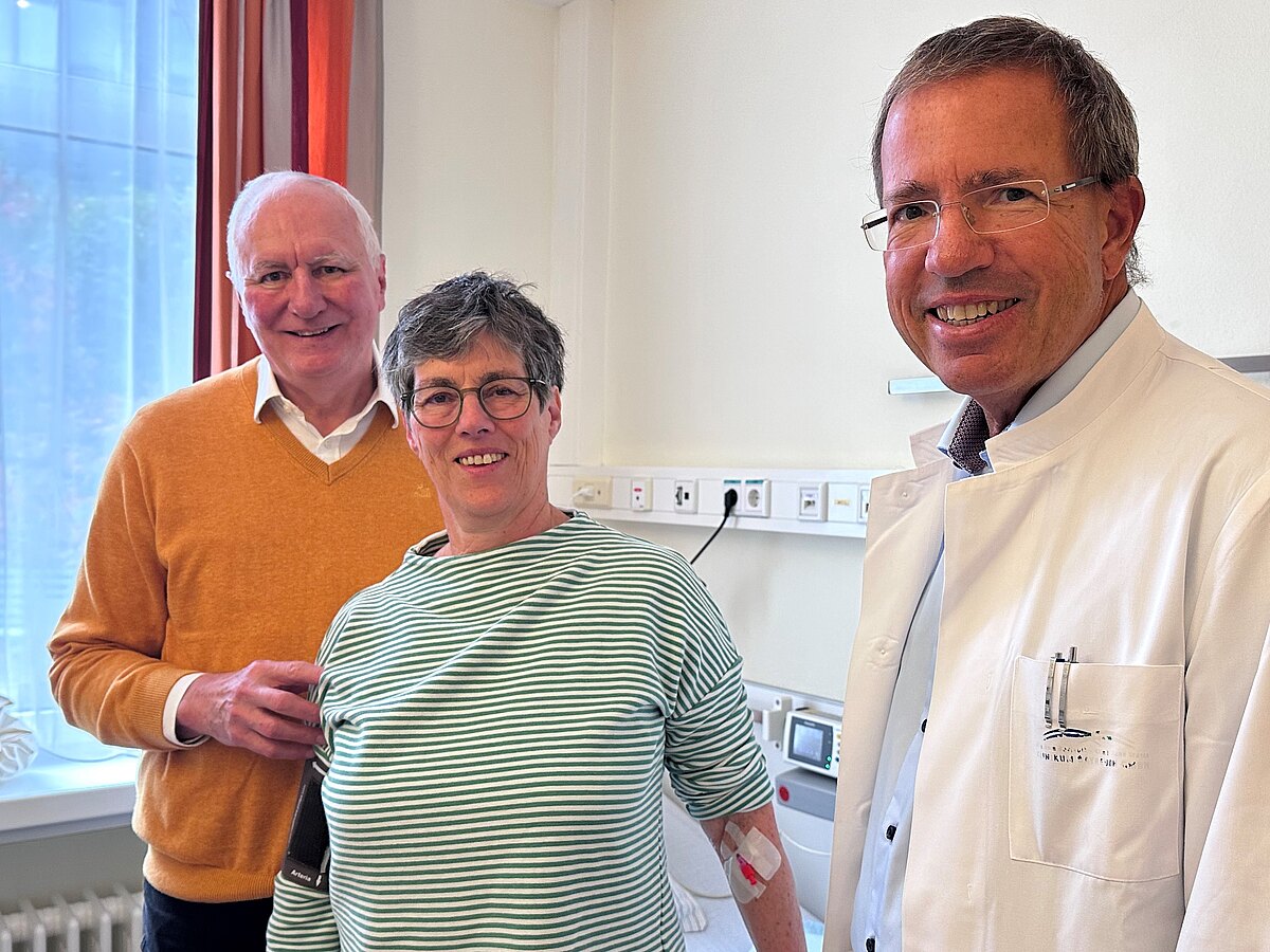 Der Zeitpunkt ist für Irmela P. nicht ideal. Das weiß sie. Dennoch war es für sie und ihren Mann keine Frage, die Therapie zu beginnen – auch wenn mögliche Nebenwirkungen nicht ausgeschlossen sind. Deren Auftreten wird in der Klinik engmaschig überwacht. „Wir wissen, welches Schicksal uns ohne Behandlung bevorsteht. Jede Möglichkeit, dies hinauszuzögern, ist ein Gewinn“, sagt ihr Mann Johann P..