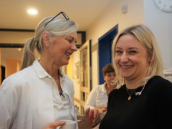 Entstanden ist eine moderne Küche mit gemütlicher Sitzecke, die nun wieder allen auf der Station offensteht. „Die Küche ist hier der Mittelpunkt. Nicht nur für unser Team, sondern auch für Patientinnen, Patienten und deren Angehörige. Hier wird gemeinsam gebacken und gekocht, wird zusammengesessen, werden aber auch schlechte und manch sehr schlechte Nachrichten besprochen“, sagt Dr. Sabine Gernhardt, Direktorin der Palliativstation. Es ist ein Ort, an dem ebenso gefeiert wie geweint, besprochen und gequatscht werden kann, darf und soll. Gernhardt bedankte sich, bei all jenen, die das möglich gemacht haben: Hertel Möbel, die die Küche geplant und umgesetzt haben, haben 2.000 Euro gespendet, Wohnbau Büttner hat sich mit 6.000 Euro an der Modernisierung beteiligt. Und dann war da noch Kerstin Lehner. Sie war selbst vor mehr als zehn Jahren im Rahmen ihrer Ausbildung für vier Wochen auf der Palliativstation tätig – eine Arbeit, die sie nachhaltig beeindruckt hat. „Ich fand es damals schon schön zu sehen, wie schwerstkranke Menschen gemeinsam mit ihren Angehörigen in der Küche und der dazugehörigen Sitzecke immer wieder einen Platz fanden, um etwas Ruhe, eine Auszeit von der Krankheit zu den Sorgen zu finden“, sagt Lehner, die zur Einweihung gekommen war. Sie startete ein Crowd-Funding-Projekt. Das Geld aus einer Backaktion, die sie gemeinsam mit ihren Kindern noch verwirklicht hat, machte die Summe rund: 1.300 Euro sind so zusammengekommen. Am Ende fehlten 8.500 Euro, die die Geschäftsführung der Klinikum Bayreuth bereitstellte und damit den Weg für die Realisierung des 16.000 Euro-Projekts freimachte.