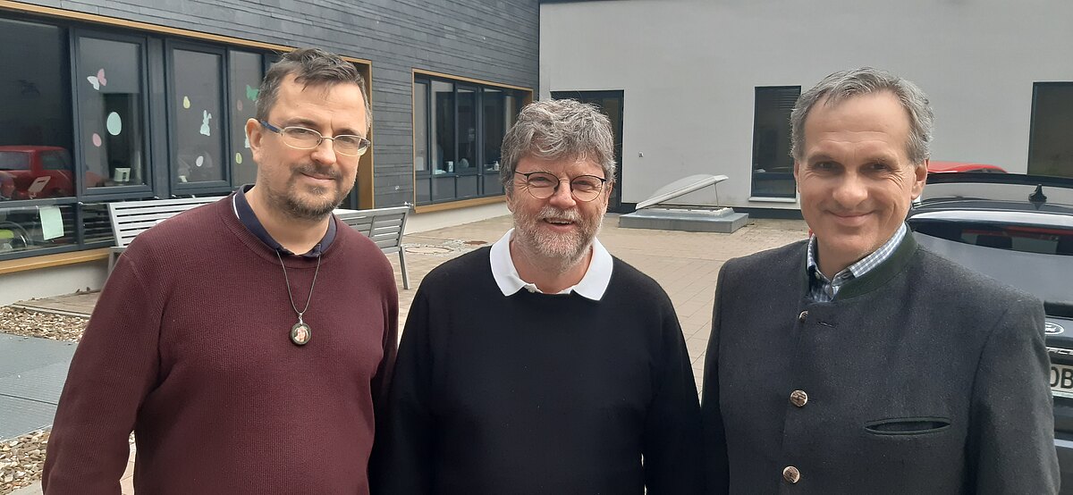 Wiedersehen beim Mobilitästag an der Klinik Hohe Warte: Rafal Kander, Privatdozent Dr. Rainer Abel und FGQ-Geschäftsführer Felix Schulte gehören zum Team des Safe House für Menschen mit Behinderung, die aus der Ukraine flüchten müssen.