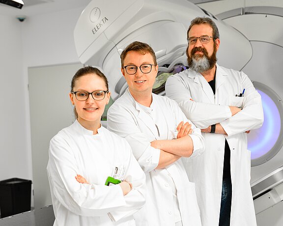 Ob in der Krebstherapie, bei Röntgen-, CT- und MRT-Aufnahmen oder bei Szintigrafien – richtig dosiert helfen Strahlen in ihren vielfältigen Anwendungsmöglichkeiten diagnostizieren und heilen. Dabei steht die Sicherheit der Patientinnen, Patienten und der Mitarbeitenden an erster Stelle. Es gilt: So viel Strahlung wie nötig, aber auch so wenig wie möglich. Die Abteilung für Medizinische Physik und Strahlenschutz unterstützt die Kliniken für Strahlentherapie, Nuklearmedizin und Radiologie, aber auch andere Abteilungen und Einrichtungen wie den OP, überall dort, wo ionisierende Strahlen am Menschen diagnostisch und therapeutisch zum Einsatz kommen. Sie kümmert sich in enger Abstimmung mit den Aufsichtsbehörden um alle behördlichen und technischen Aspekte der Anwendung und die Einhaltung gesetzlicher Vorgaben und Grenzwerte. Das Aufgabengebiet umfasst die individuelle Erstellung von Bestrahlungsplänen für Patientinnen und Patienten der Strahlentherapie und Nuklearmedizin ebenso wie die regelmäßige Überprüfung der Geräte und Anlagen, die die Strahlung erzeugen, sowie der Schutzeinrichtungen, die Patientinnen, Patienten und Mitarbeitende vor der schädlichen Wirkung der Strahlen bewahren sollen. Auch die Überwachung der auftretenden Expositionen in allen Abteilungen sowie die Schulung der Anwenderinnen und Anwender zählt zur Verantwortung der Abteilung Medizinische Physik und Strahlenschutz.