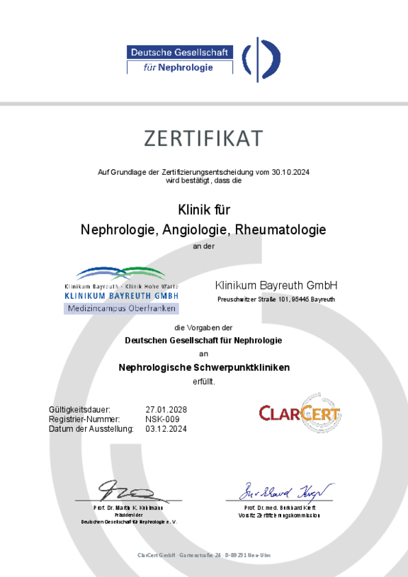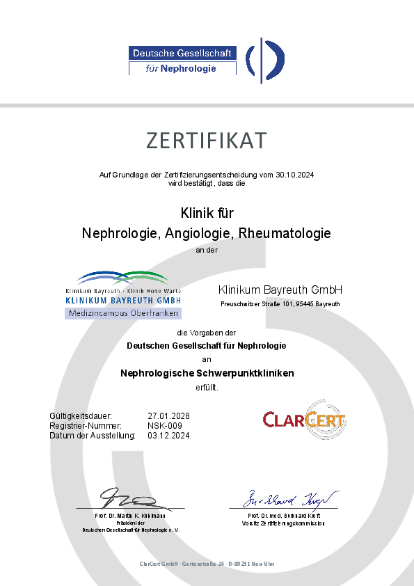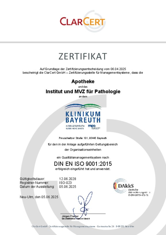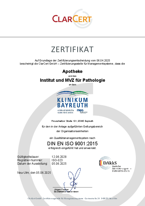 Besonderes Zeichen des hohen Qualitätsstandards sind zertifizierte und somit von externen Experten regelmäßig begutachtete Bereiche und Zentren der Klinikum Bayreuth GmbH.